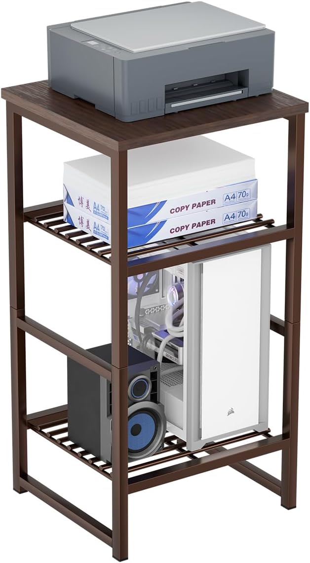 - 【Durable & Stable】Made of high-quality wood boards, rust and corrosion resistant steel iron frame, which is sturdy and stable. The 3 tier printer stand's wood is waterproof and easy to clean daily. Max loading capacity: 150lbs.