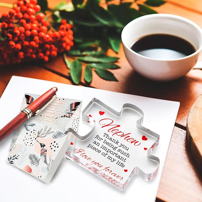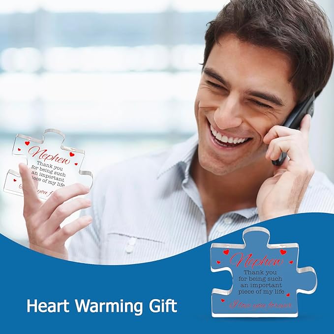 Nephew Gifts - Acrylic Puzzle Keepsake Nephew Gift - Heartwarming Nephew Gifts From Auntie, Uncle - Happy Birthday Nephew Gift Paperweights - Christmas, Birthday, Graduation, Wedding Gifts for Men