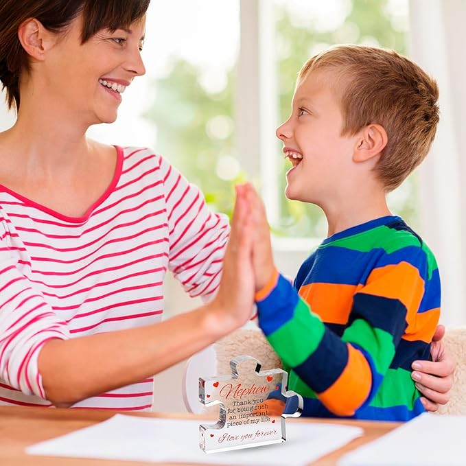 - 🎁 Celebrate The Unique Bond With Your Nephew: Selecting the perfect gift for your nephew can be a challenging task. If you're looking for original nephew gifts Paperweights from aunt or nephew gifts from uncle, look no further than this personalized acrylic puzzle.