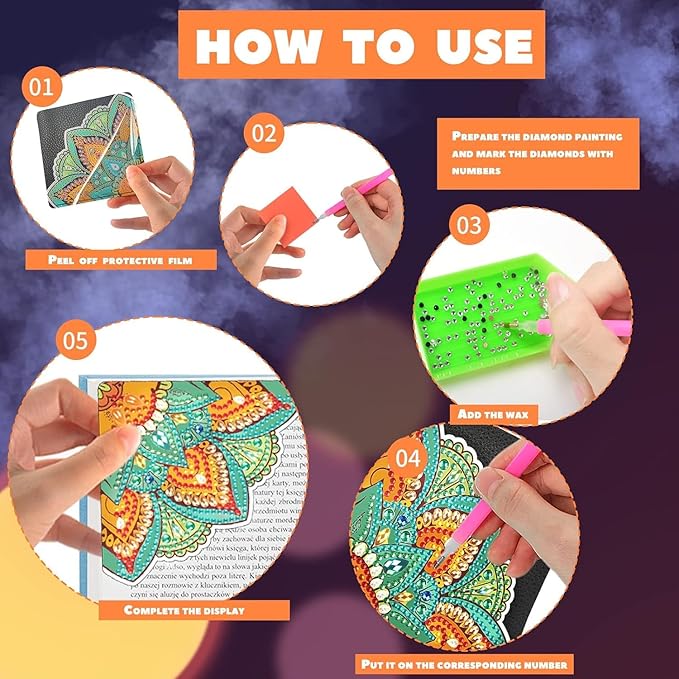 - 【Easy to Use】Our corner bookmark set comes with a drawing tool, and each bookmark has a different pattern. First, tear off the protective film on the bookmark, then pour the corresponding diamond number into the tray, dip the pen on the glue, and stick the corresponding diamond number to the bookmark.
