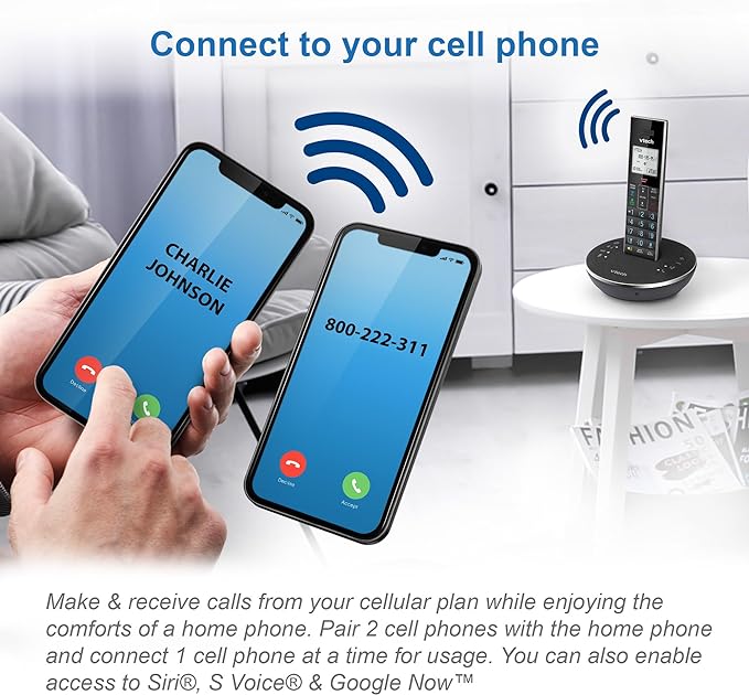- [Make & receive cellular calls using Bluetooth Connect to Cell feature] - Make and receive calls from your cellular plan while enjoying the comforts of a home phone. Pair up to 2 cell phones and connect 1 cell phone for use with landline calls. Access your mobile smart assistants such as Siri, S Voice and Google Now using this phone system.