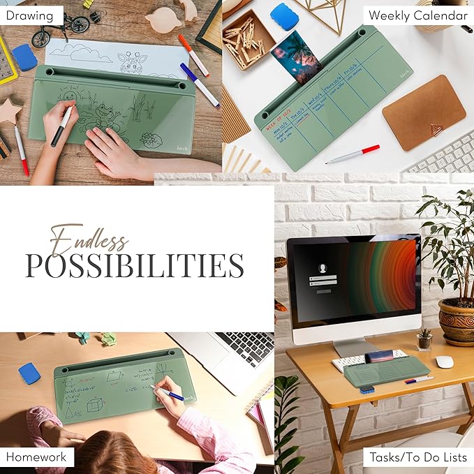 Birch Desktop Whiteboard with Storage & Multiple Markers Surface Desktop Glass Dry Erase Board Desk Top White Board Dry Erase Notepad Desk White Board Tabletop Desk Whiteboard (Moss)