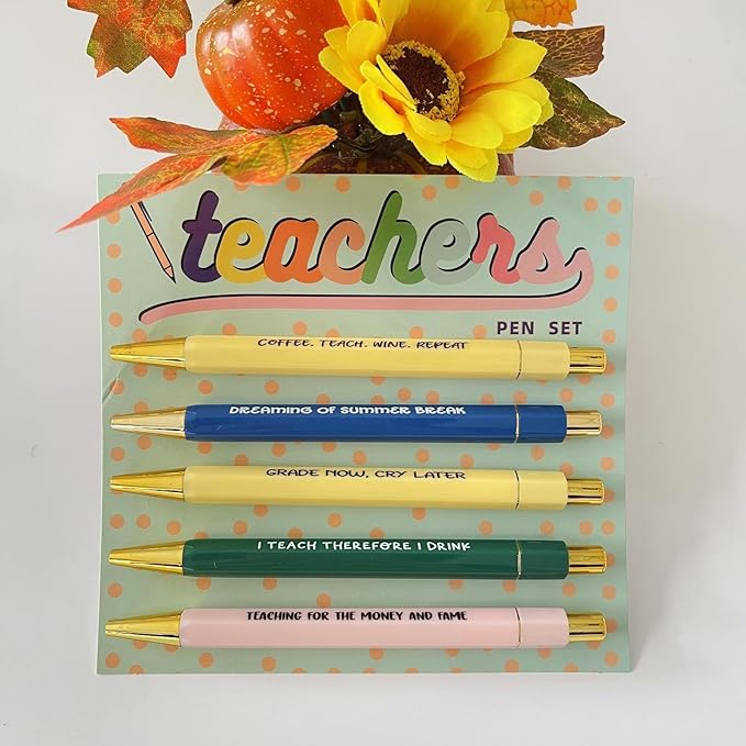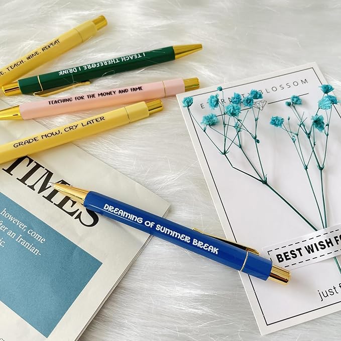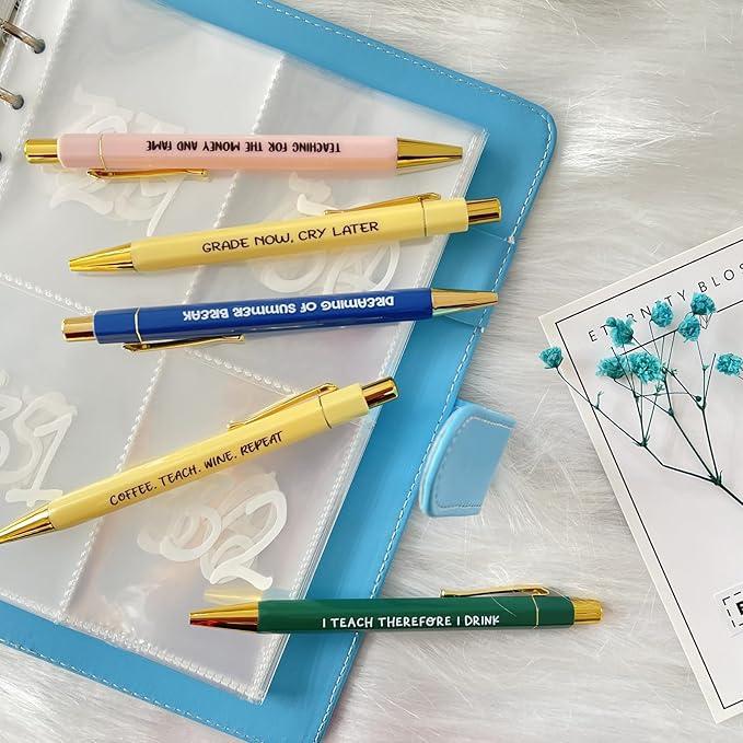 Jxueych Funny Pens 5-Count, Black Ink,Medium Nib 1.0mm, Funny Office Gifts for Coworkers, Personalized Pens Vibrant Funny Quotes Swear Word Daily Pen Set (Q)