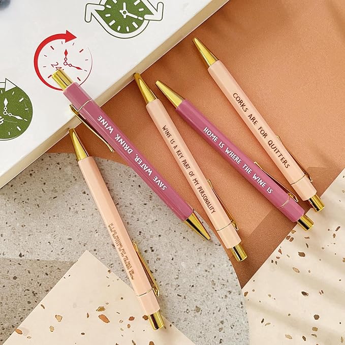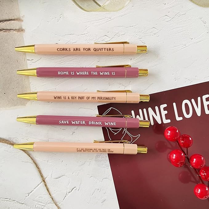 Jxueych Funny Pens, 5-Count, Black Ink, Medium Nib 1.0mm, Office Gifts for Coworkers, Personalized Pens with Vibrant Funny Quotes and Swear Word Daily Pen Set