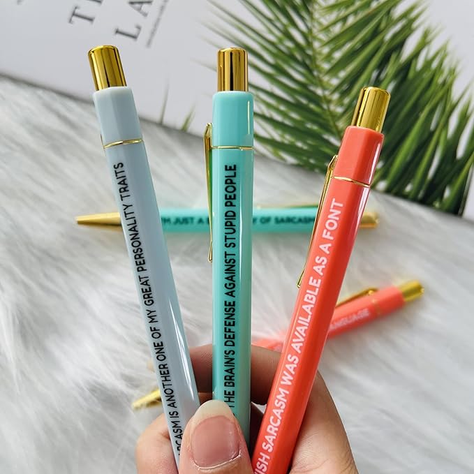 Jxueych Funny Pens 5-Count, Black Ink,Medium Nib 1.0mm, Funny Office Gifts for Coworkers, Personalized Pens Vibrant Funny Quotes Swear Word Daily Pen Set (P)