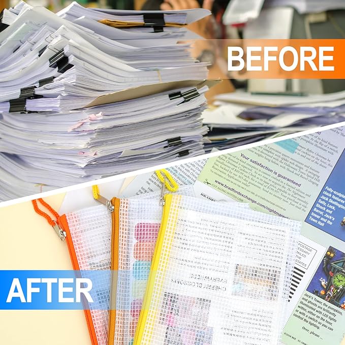 - PRODUCT QUALITY: The mesh zipper pouches are made of quality PVC plastic. The mesh structure makes them more solid, not easy to deform and break, and with a good waterproof and moisture-proof effect, the mesh zip bags can well protect your documents.