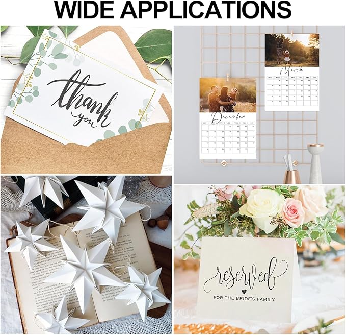 - [MULTIFUNCTIONAL APPLICATIONS] Cardstock paper is thick and strong, rendering it ideal for personal use, office and school supplies, art projects, business communications, posters, printed documents, and more. The cardstock paper holds ink well and delivers rich, vibrant colors and sharp images with perfect results. Unleash your creativity by cutting, folding, and gluing to your favorite size or shape. Card stock paper can be used to create brochures, menus, photo mats, and more.