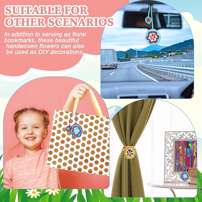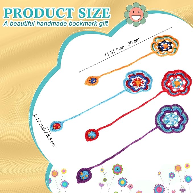 - Novel Design: the cute bookmarks are carefully woven by hand in different shapes of flowers, and each crochet is distinctive, so the size may vary slightly, available for your daily use