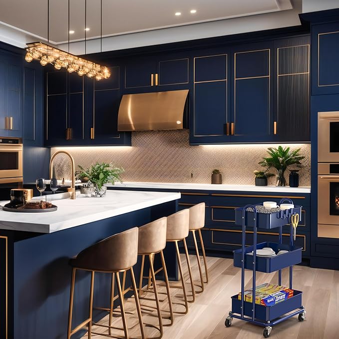 Simple Houseware Heavy Duty 3-Tier Metal Utility Rolling Cart, Navy
