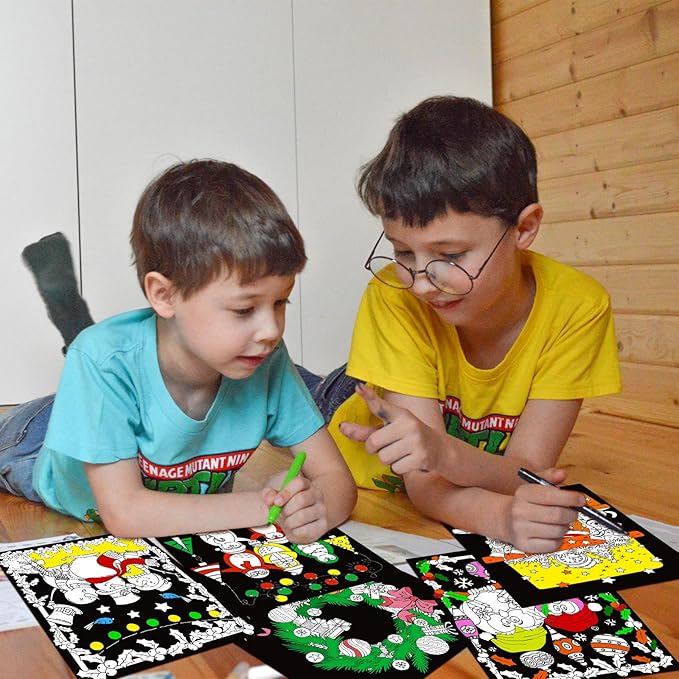 Zhanmai 48 Pcs Christmas Velvet Coloring Posters for Kids - Felt & Fuzzy Coloring Sheets DIY Craft Project