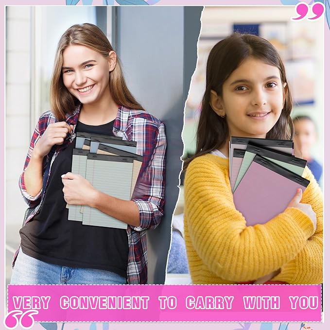 Lincia 12 Pcs 5" x 8" Colored Note Pads Mini Legal Pads Ruled 50 Sheets Per Micro Writing Pads Perforated and Lined for College Office Supplies (Sweet Colors)