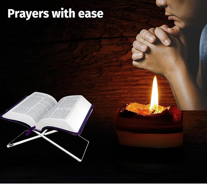 - [Strong Structure]. This bookstand is made of durable, heavy duty, 8mm acrylic material sure to withstand typical everyday wear and tear. This X-shaped bookholder is sturdy and supports a variety of heavy-weight books. Our product is a perfect book holder for desk and can be a great addition to your kitchen as a recipe holder. Imagine how great this quran holder would look on your counter!