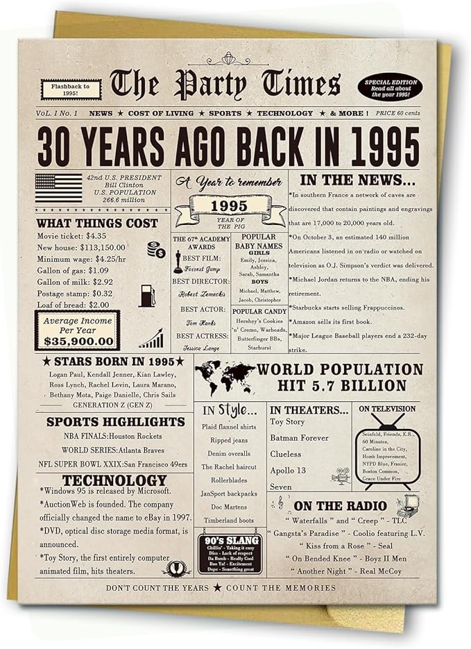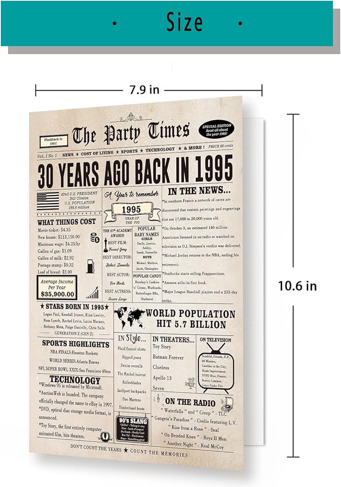 - 30 Birthday Gifts-- Find interesting 30th birthday cards for your children. The cards contain some specific events which can help you review interesting events with family and friends.
