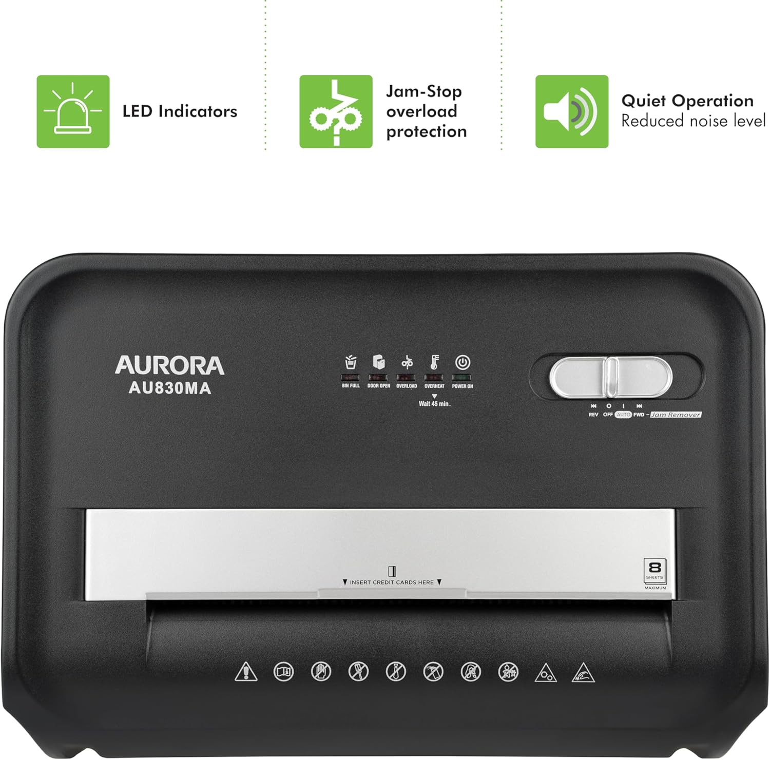 Aurora AU830MA High-Security 8-Sheet Micro-Cut Paper and Credit Card Shredder/ 20 Minutes/Security Level P-5