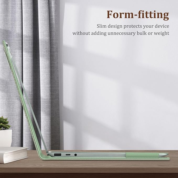 - Premium PU leather surface, soft interior lining, comfortable handing feeling, offers all round protection. Unique protective design allows operating your Surface Laptop freely without removing the case.