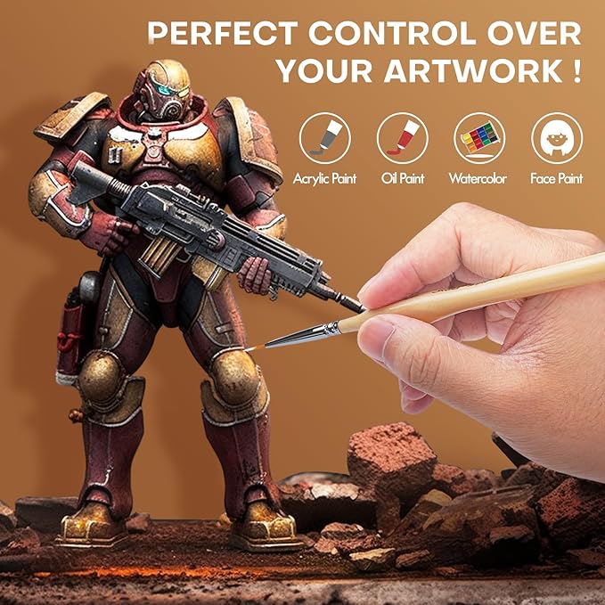 - IDEAL FOR PRECISION PAINTING: Miniature brushes are perfect for 40K, DnD miniatures D&D figurines, ultra fine detail painting, army figures. You can use detail brush set as paint by number brushes, hobby paint brushes, plastic model paint brushes, express yourself through any creation and craft! The mini paintbrushes are perfect present for your loved one or a treat to yourself !