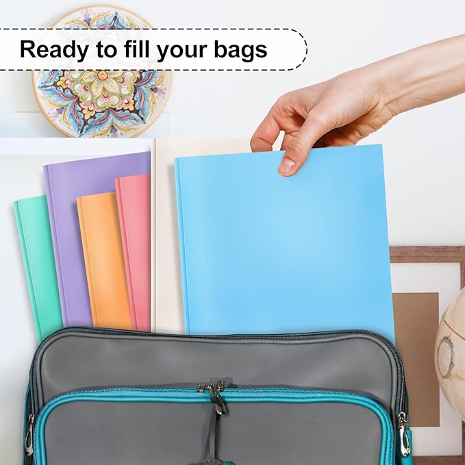 ViVin Heavy Duty 12-Pack Plastic Folder, Pastel Colors, 2 Pocket Letter Size Poly File, Cute Plastic Folders with 3-Prong Fasteners, for School, Home and Office (Assorted Color)