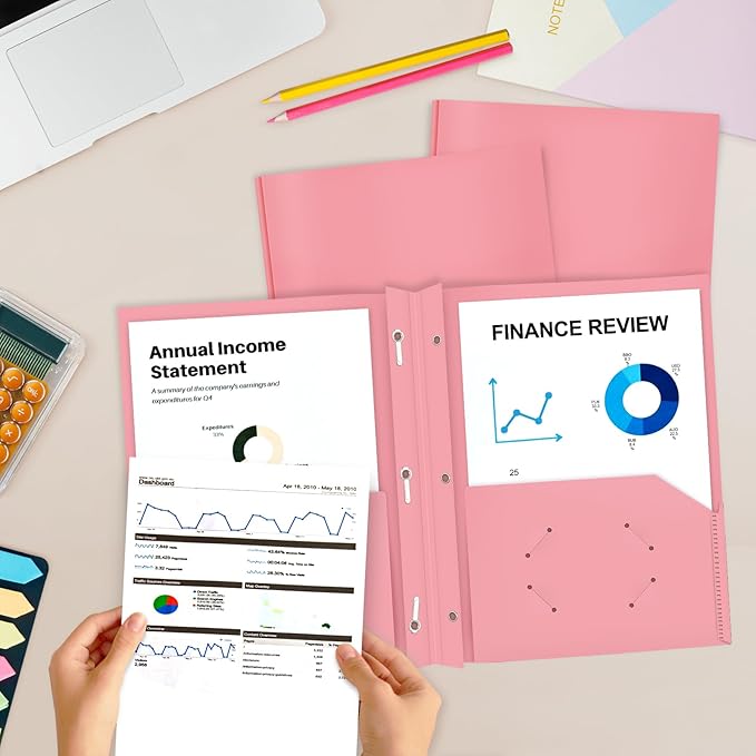 - Large capacity: 2 pockets poly folder fit 8.5 x 11 in paper, 100+ sheet capacity for each pocket, 3 prong fasteners hold 50+ sheet.