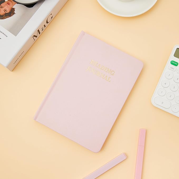 Reading Journal Book Lovers Gifts Hardcover Leather Readers Accessories Track Reading Log with 65 Books Reviews, 5.8”x8.3”, Pink