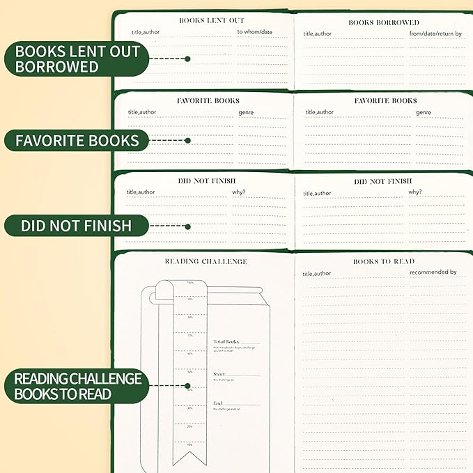 - Multifunctional Design - There is an index preview help you check your reading and rating quickly. Daily reading tracker tracking your reading progress. The challenge of reading inspire you to finish your goals that you set at beginning. Write books you have read and books you borrowed or lent and more.