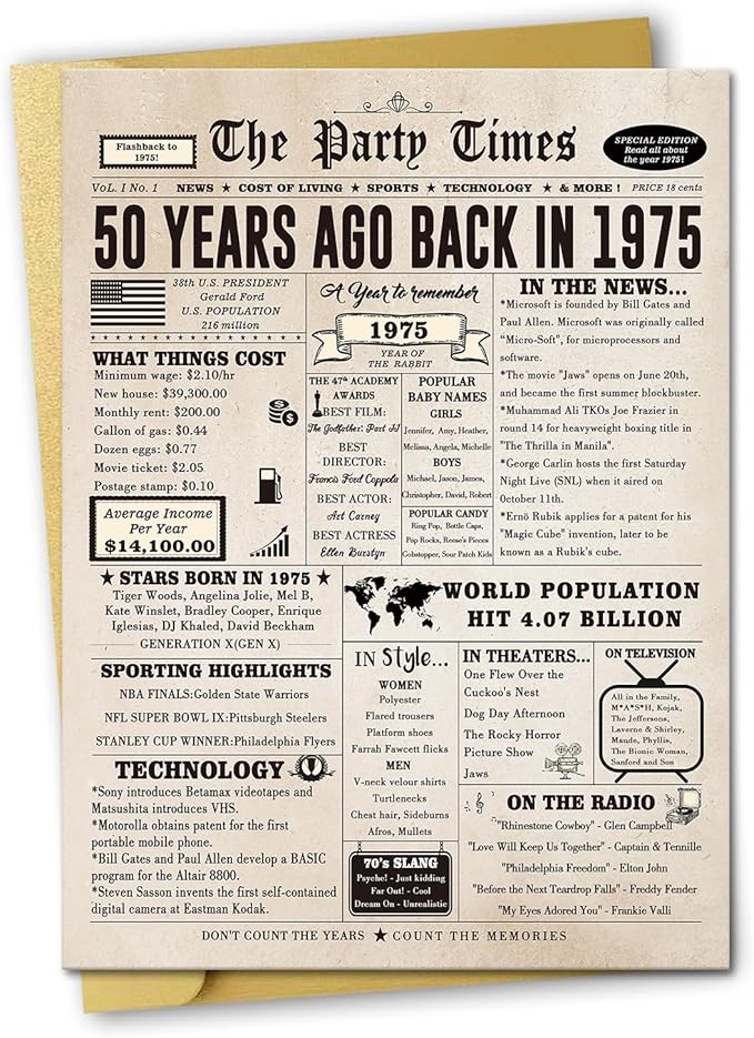 - Men's 50th Birthday Gift Ideas: A memorable 50th birthday gift for your family or elders. The card is filled with interesting stories,let us recall the past,prepare a commemoration significance gift for your recipient.