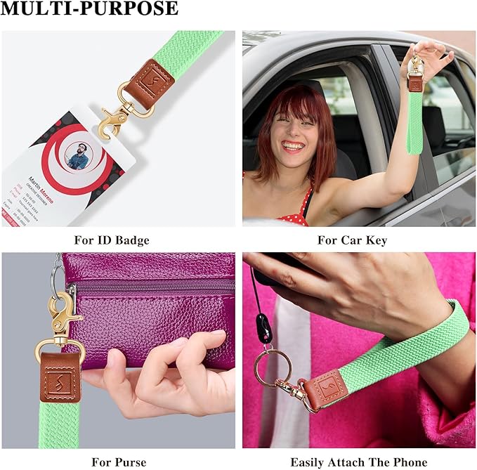 - Excellent Materials: Our wristlet key lanyard is light and strong, not easy to break or fade, and can provide you with a long-lasting user experience.This wristlet keychain for women is made with braided nylon and genuine leather is skin-friendly, has a quality zinc alloy metal wristlet strap key loop make it more solid and sturdy, can maintain long-term use to keep your wrist lanyard for keys, ID badge, or other essentials secure,suitable for long time wear.