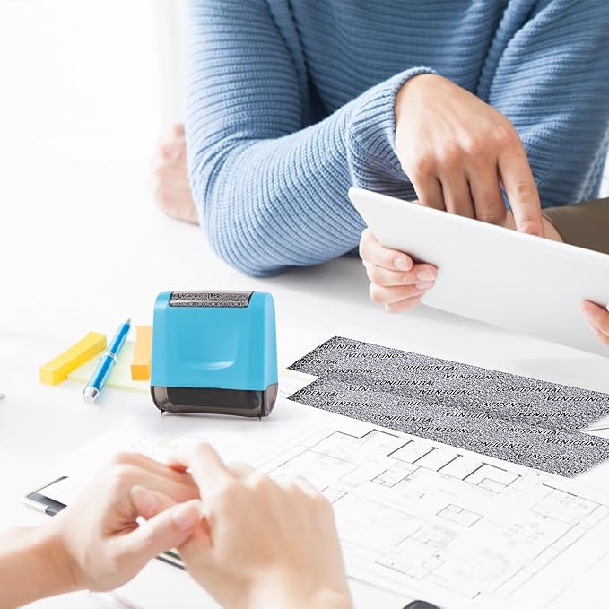 - ✔Protect your privacy from identity theft: The roller stamp Works on most PLAIN paper with black fonts, DO NOT FITS ON glossy surfaces. Suitable for various types of writing paper, regular paper, courier notes,bills, labels, tax returns,bank statements,postcards etc. Protect your private information.