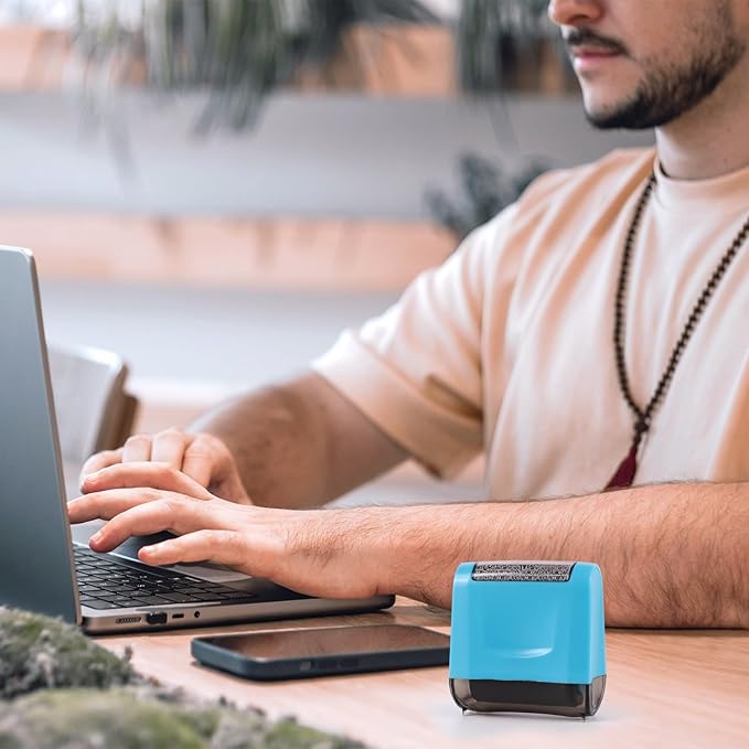 - ✔Easy To Use: First remove the cover, then swipe the information with the roller stamp,quickly and effectively cover your personal and sensitive information. No need for a shredder,no more mess! and environmentally friendly.
