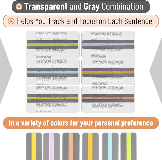- With their simple yet effective design, these strips are ideal for helping readers stay focused on the specific sentence they are currently on within a block of text by obscuring other sentences with gray coloring while highlighting the one they're reading in transparent color.