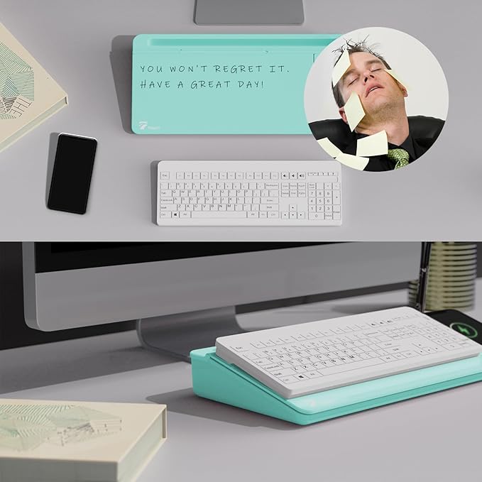 TOWON Desktop Glass Whiteboard with Charger Pad, Whiteboard for Desk with Charging Station, Desk Buddy Dry Erase with Charger for Home Office, Dry Erase Computer Desk Notepad, Teal Blue, 17 x 6 in