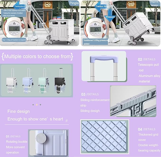 - UNIQUE DESIGN: This folding trolley is made of a robust and durable plastic housing with rust-resistant aluminium alloy handles (ultra-light), wear-resistant and pressure-resistant TPE rubber wheels, Unique 3-wheel climbing design and good cushioning performance, which provide the cart with a long practical service life. It is suitable for various roads, including blind roads, stairs, uneven sandstone ground, etc.