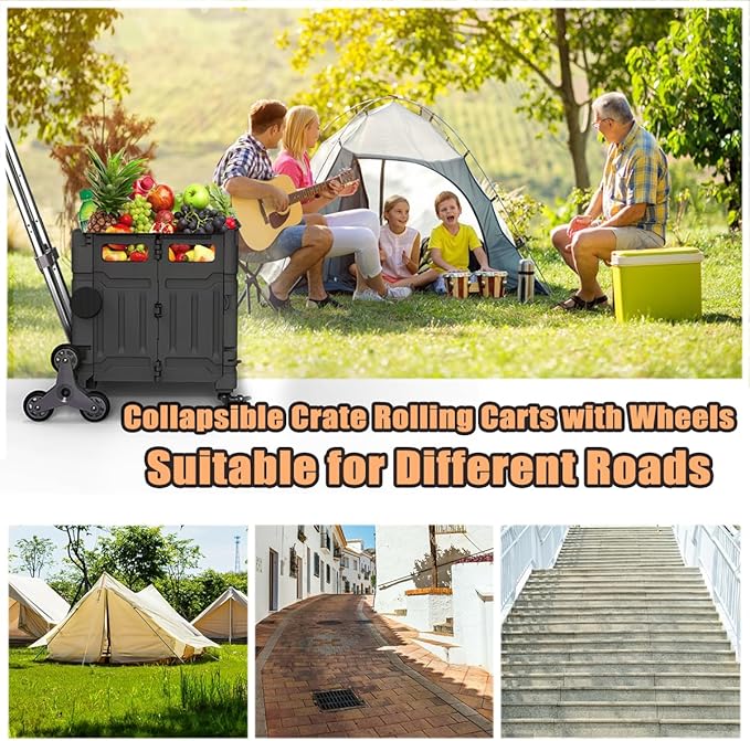 Foldable Utility Cart with Stair Climbing Wheels,Folding Portable Rolling Crate Handcart with Aluminium Alloy Telescoping Handles, Handcart for Grocery Book File Tool Art Supplies