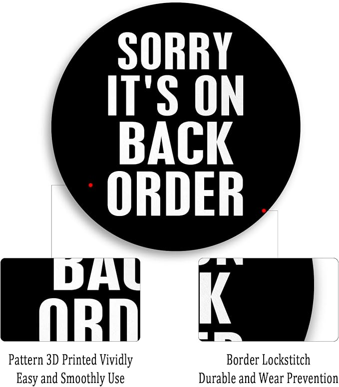 - Novelty Mouse Pad: This fun small laptop mouse pad is designed with funny arts:Sorry It's on Back Order. The black mousepad will always bring more happiness and fun to your life. You will get tons of comments on it