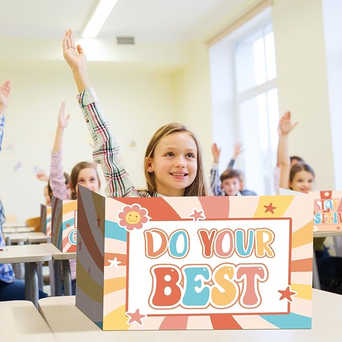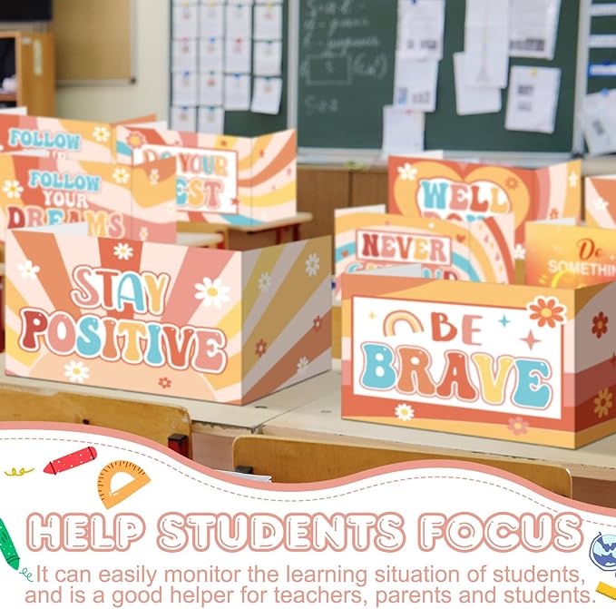 Honoson 24 Pcs Bulk Inspirational Privacy Folders for Students Cardboard Test Privacy Boards Motivational Words Desk Dividers Shield for Classroom School Study Supplies, 6 Styles(Groovy)