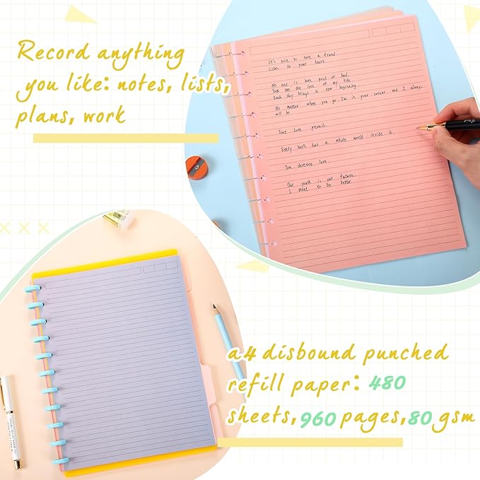 - Abundant Value Pack: you will receive 480 sheets of colored discbound refill paper, in 12 different colors, each with dimensions of about 8.5 x 11 inches, suitable for everyday study or work needs, our paper not only adds a pop of color but caters to volume demands effectively