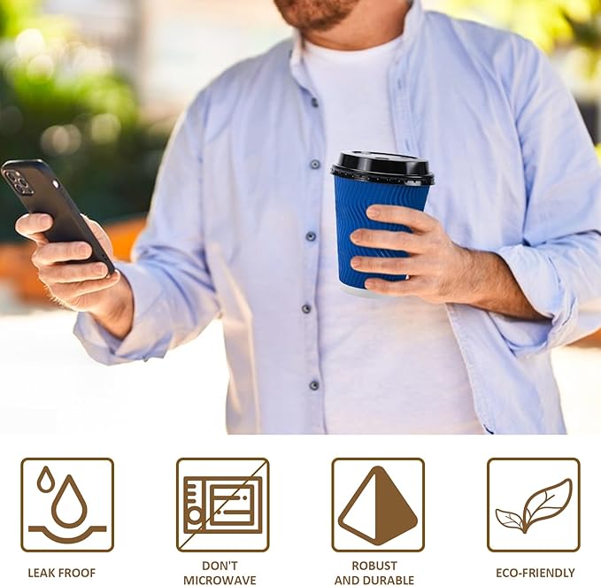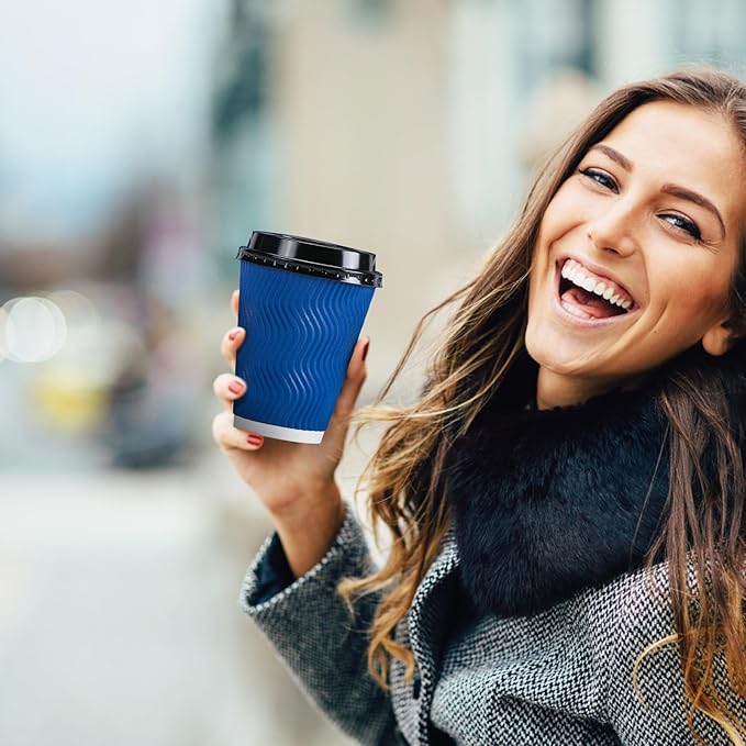 100 Pack Coffee Cups with Lids 12oz, Disposable Insulated Ripple Wall To Go Paper Coffee Cups for Hot/Cold Drinks Office Home Shop Event (Navy)