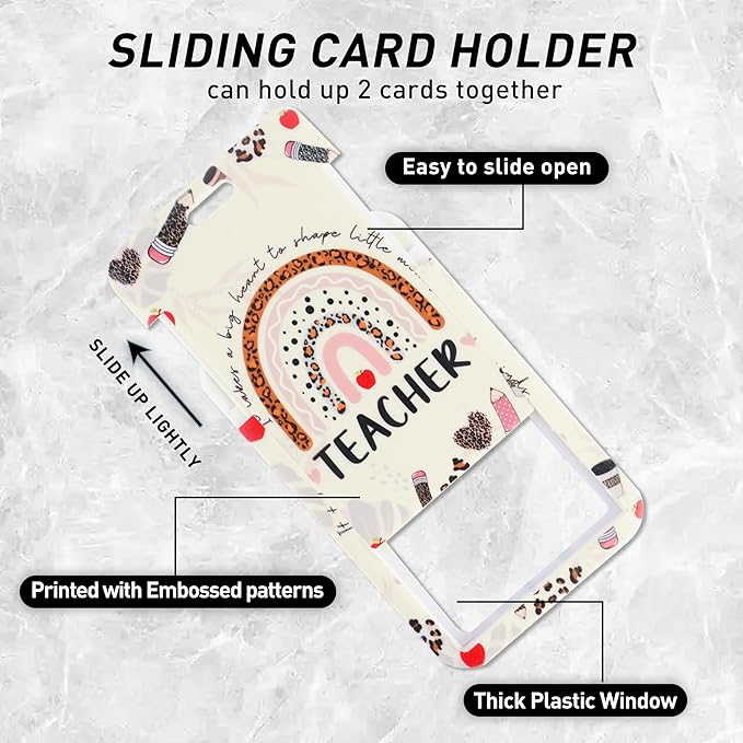 Teacher Lanyard with ID Holder, Leopard Print Rainbow Inspirational Quote Badge Holder with Beaded Adjustable Lanyard, Teacher Appreciation Gifts