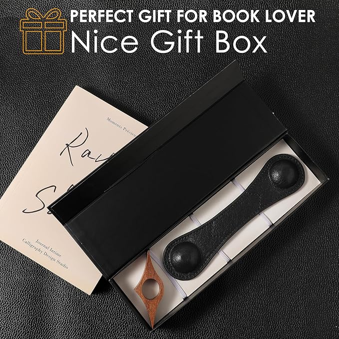- Full Grain Leather:Our book holder is made of the premium genuine leather-full grain leathter,luxury and strong and the thumb book page holder is made of wood.Good choice for gifts.