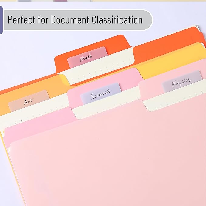 - The beautiful, muted, and soft colors provide high visibility when organizing documents or files to easily identify items at a glance.