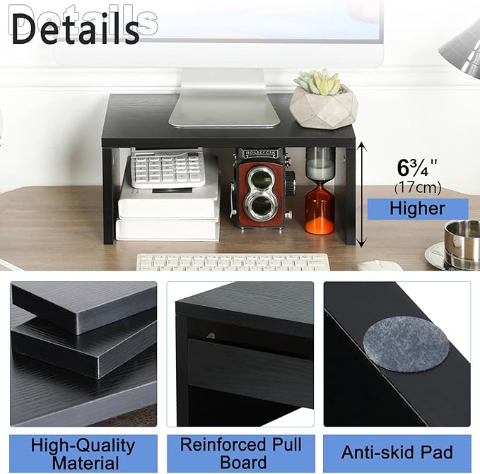 TEAMIX 14.2 inch Monitor Stand Riser, Wood Monitor Riser with Storage for Desk Small Monitor Stand TV/Screen/PC/Laptop Riser Computer Stand Desktop Shelf (Black-Higher)