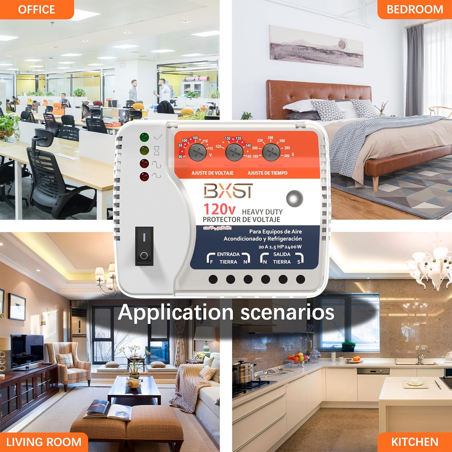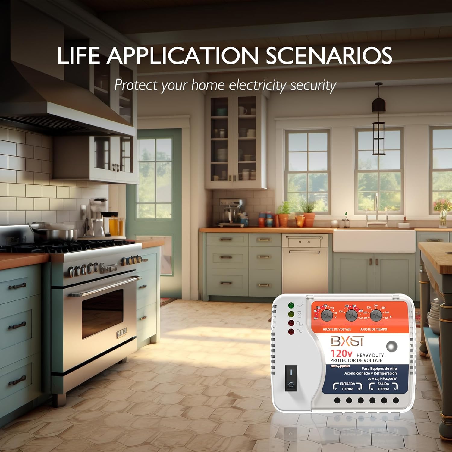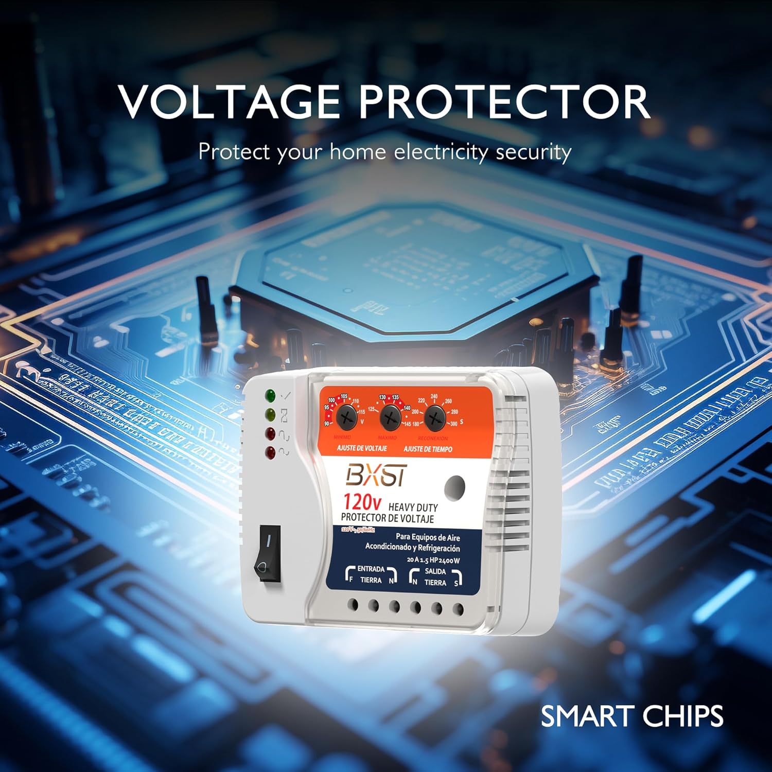 BXST Wiring Voltage and Wiring Surge Protector for Refrigerator TV 2400W Appliance AIR Conditioning Inverter Mini Split Adjustable Over/Under and Delay Time Voltage 20A 220V 140J