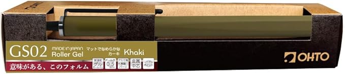 OHTO GS02 Roller Gel Pen, Retractable Needle Tip 0.5mm Fine Point, Khaki Barrel, Ultra-Quick Drying Black Gel Ink Pen, All-Metal Hybrid Body, GS02-G5-KK