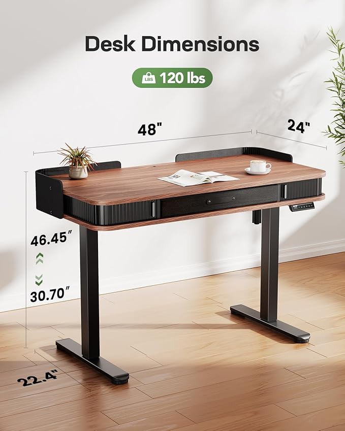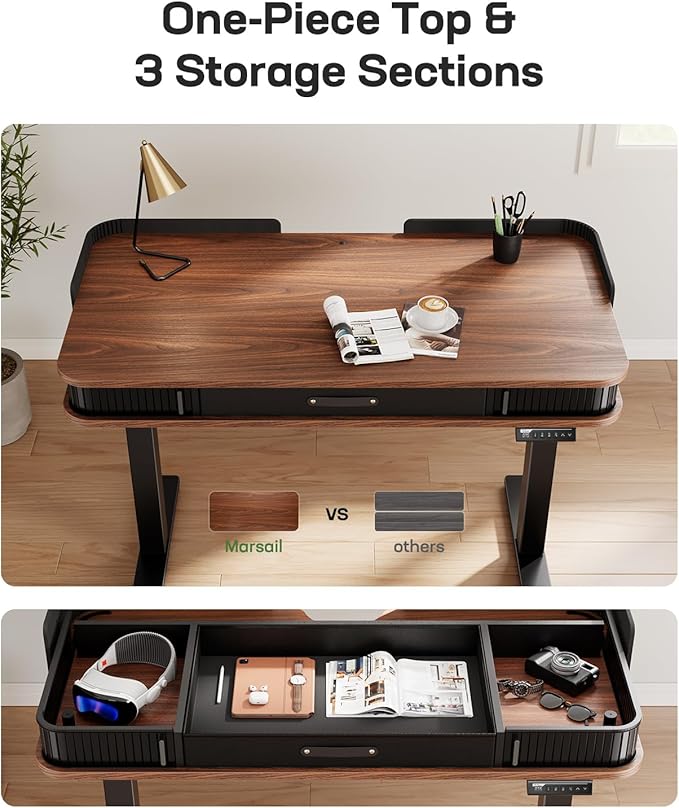 Marsail Electric Standing Desk Whole-Piece Desktop 48 x 24 Inches Height Adjustable Desk with 3 Drawers Home Office Table with 3 Memory Preset