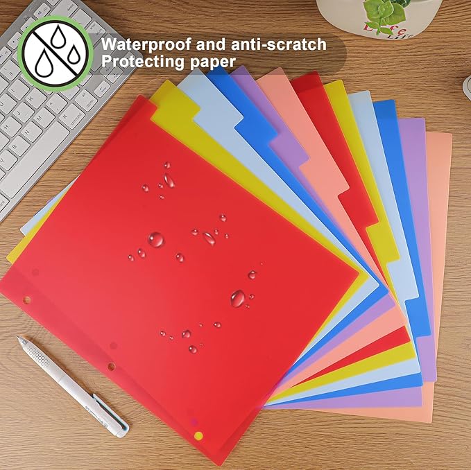 - 【SCHOOL AND OFFICE NECESSITIES】The colorful borders on these file dividers with tabs add a touch of style to your binder. Three ring binder dividers with tabs are perfect for organizing schoolwork, office documents, or even personal papers.