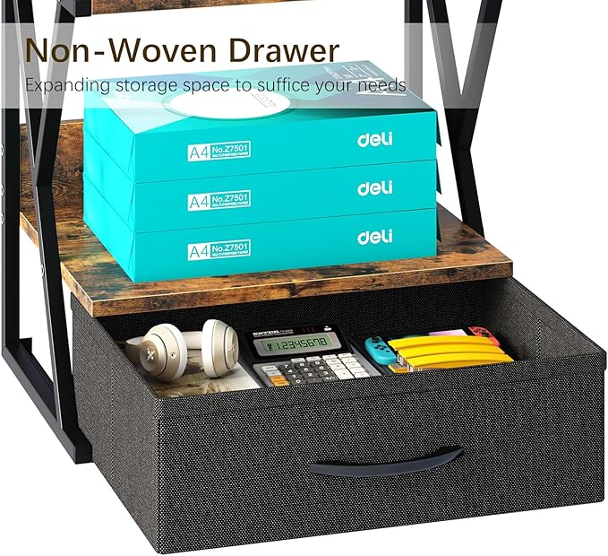 aboxoo Printer Stand For Desk With Storage Drawer, 2 Tier Desktop Or Under Desk Shelf, Multi-Purpose Desk Organizer For Home Office, fit Fax Machine/3D Printer/Scanner, Rustic Brown