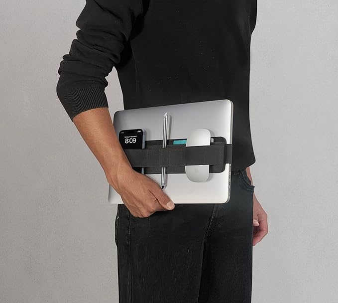 - THE PERFECT COMPLEMENT FOR YOUR LAPTOP: Smart and flexible design to organize and carry your most important items attached to a laptop or notebook. Flat pockets for slim accessories, flexible pouch for bulky stuff, and elastic bands for small things. Keep your desk organized and neat.