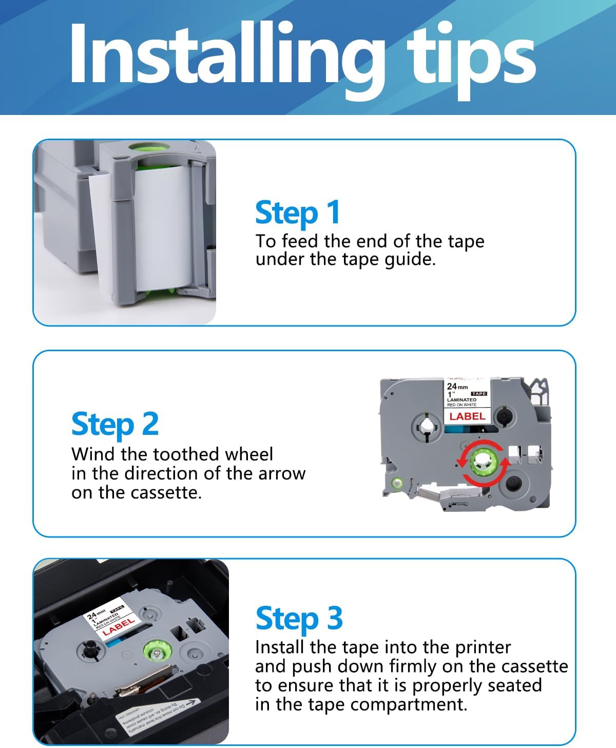 - Compatibility: The 24mm label tape is compatible with a wide range of Brother label printer, including the P-touch Cube Plus, PT-D600, PT-D610BT, PT-P900W, PT-P950NW, PTD600VP, PT-E550WVP, PT-P750W, PT-P800W and more