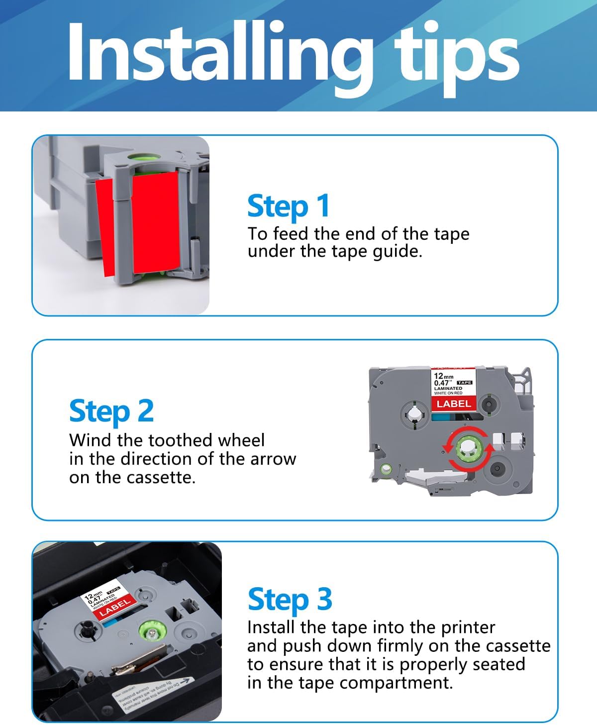 - Compatibility: The 12mm label tape is compatible with a wide range of Brother label printer, including the P-touch Cube Plus, PT-D600, PT-D610BT, PT-P900W, PT-P950NW, PTD600VP, PT-E550WVP, PT-P750W, PT-P800W and more