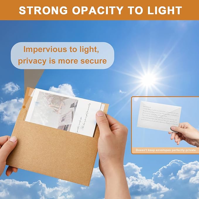 - ▶Professional Quality: Envelopes and cards are made with natural brown paper, designed to give each envelope and card a sleeker and more elegant feel. These cards are made of heavyweight strong cardstock. Each card is pre-scored and made of heavy weight 300 GSM cardstock (110 lb Cover = 200 lb Text = 300 GSM) that feels thick and sturdy. Envelopes are 120 GSM weight, no see-through worries, protect your information. Each has a pull strip adhesive seal which works nicely, and does not require a glue stick