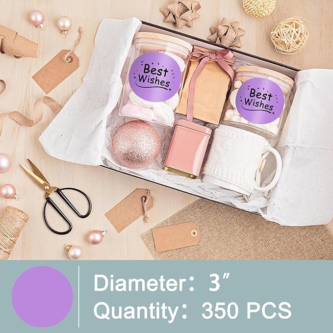 Hybsk 3 inch Circle Color Direct Thermal Stickers Shipping Labels for Barcodes,Name Tag,DIY Logo Design,QR Code,Inventory– Compatible with Zebra,Rollo,Munbyn,and More-750 pcs (3 inch,Purple)